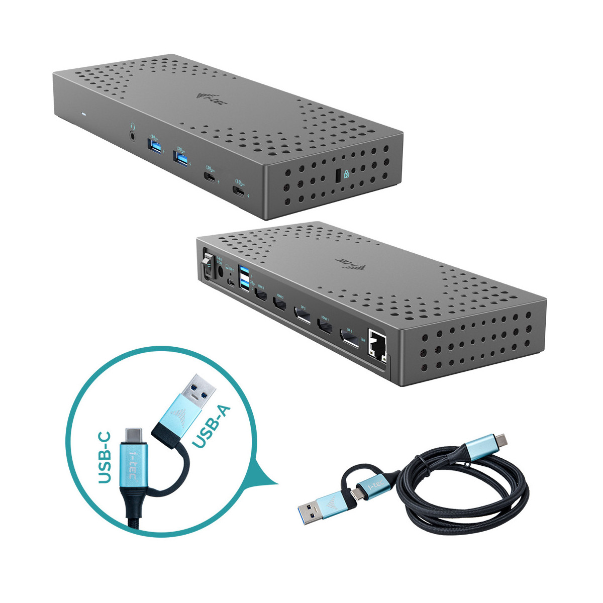 i-tec CATRIPLE4KDOCKPD2, Com fios, USB 3.2 Gen 2 (3.1 Gen 2) Type-C, 100 W, 3.5 mm, 10,100,1000 Mbit/s, Cinzento