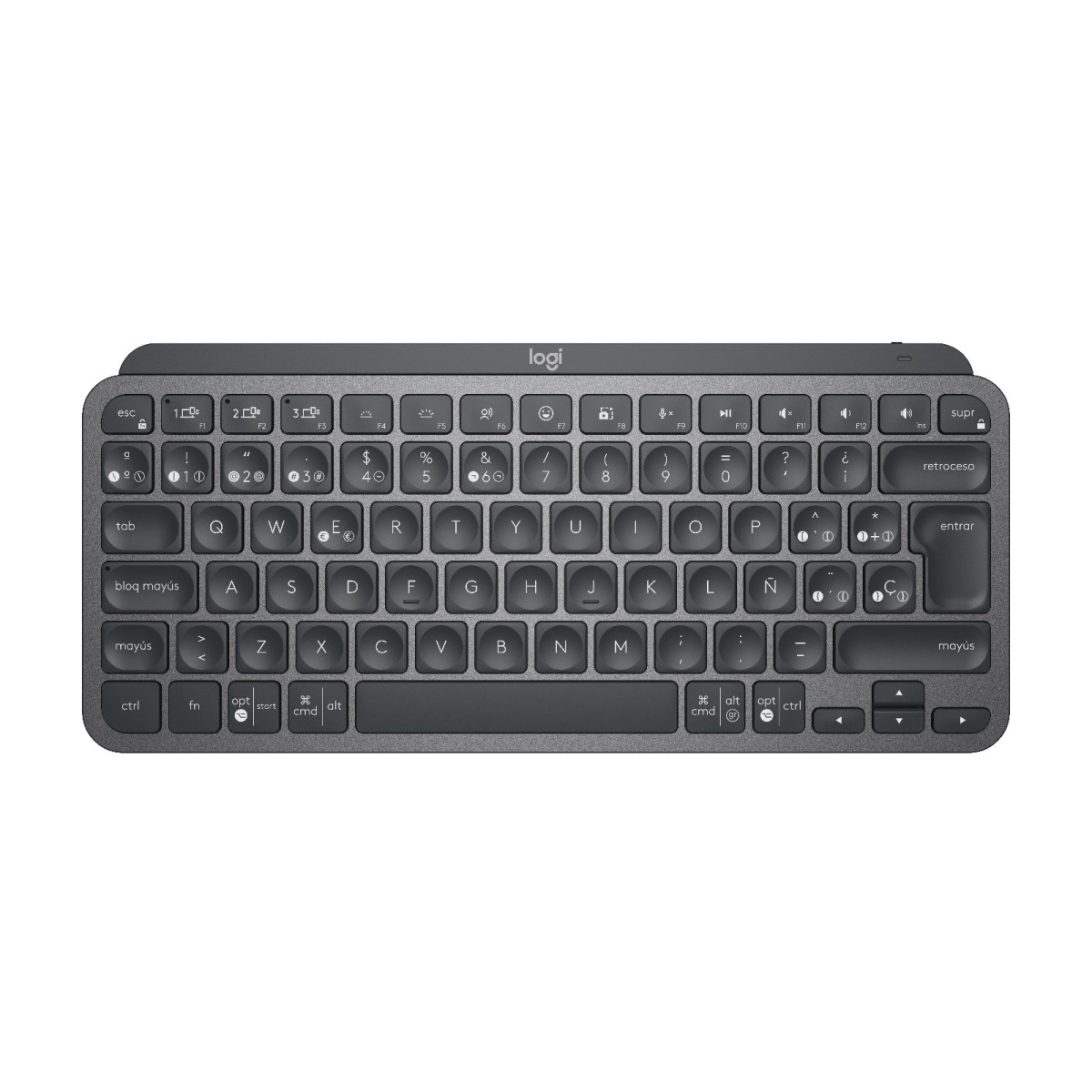 Logitech MX Keys Mini, Mini, Sem fios, RF Wireless + Bluetooth, QWERTY, LED, Grafite