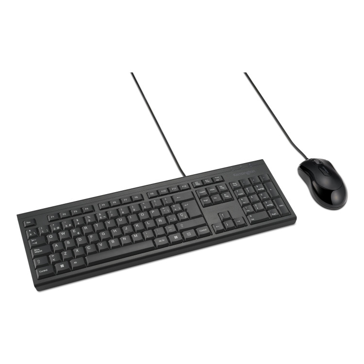 Kensington KM100 EQ, Com fios, USB, Interruptor de membrana, QWERTY, Preto, Rato incluído